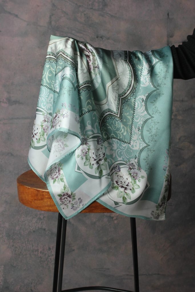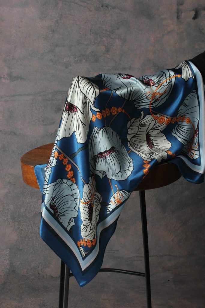Unfold the elegance of heritage and modern artistry with the Silk Cloud Scarf – Azure Bloom.